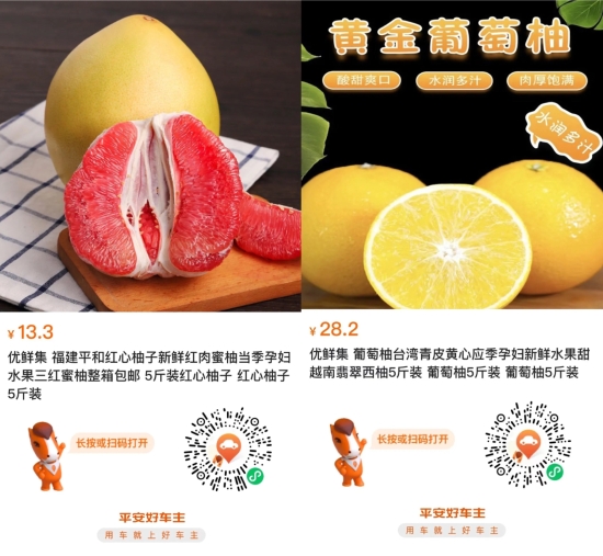 不仅如此,平安产险福建分公司还积极通过平安好车主APP线上商城精简渠道环节,把正宗原产地平和蜜柚,以高品质、低价格推荐至全国1亿多好车主APP用户手中,进一步帮助平和县脱贫柚农扩大产品销路。自10月11日平和蜜柚、葡萄柚在好车主商城正式上架以来,就以绿色有机、清甜细腻赢得了众多好车主用户的青睐。
